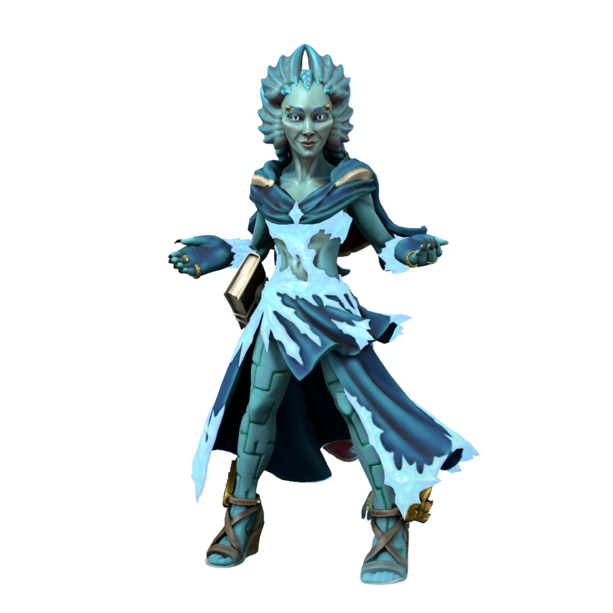 Elysea is left-handed and has ritual scarification on her legs.