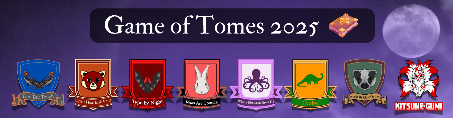 The Game of Tomes is a House based writing competition. We provide virtual write-ins with a competitive (but friendly) spirit.November is when the Game of Tomes Word Wars occur. They begin on the first of the month, and end on the last day of the month, in each participant's time zone. In this Word War, the "living" writers will vie against the Kitsune-gumi leading The Undead Horde.
