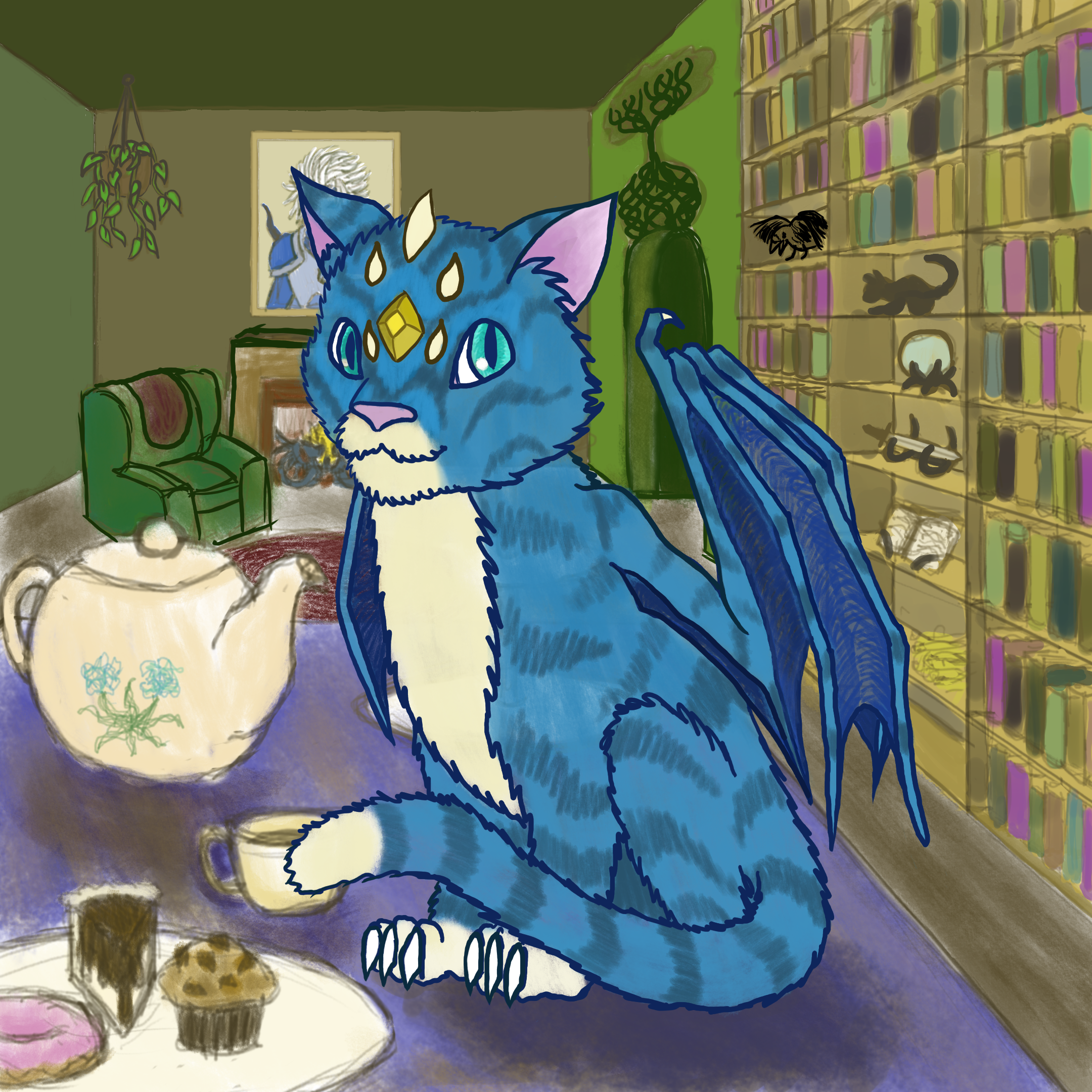 A curious blue dragon kitten wandered into House Ailurus one day. She simply wanted to get out of the cold and the rain--even though there was a part of her that liked the rain.