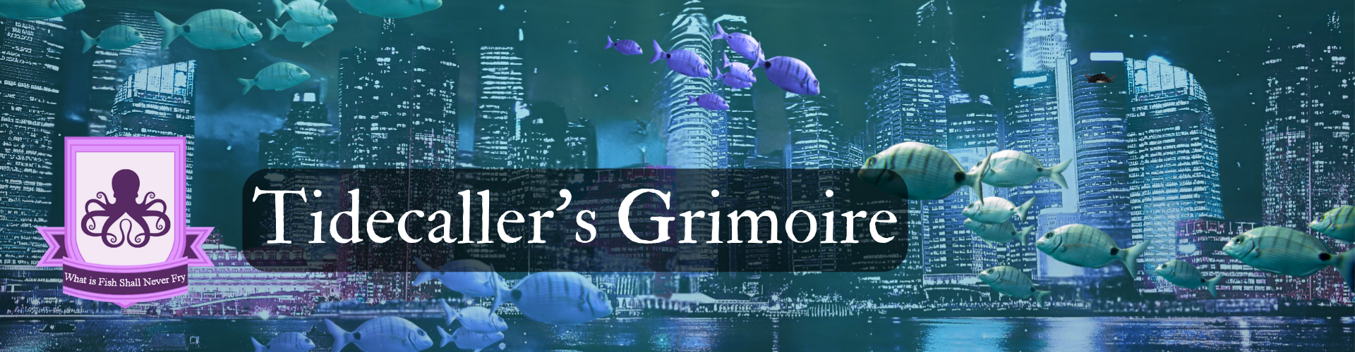 The Tidecaller’s Grimoire is an ancient literomantic manuscript of Aquatic Centaur origin, long regarded as both spellbook and lineage artifact. Bound in the hide of a mythical sea serpent and inscribed upon treated seaweed vellum, this book has served for centuries as a living repository of tide-bound magicks, combat incantations, and ritual knowledge. Now housed in Zafforza City and carried by Lady Wynter, the Grimoire functions not only as a guide to mastering aquatic and literomantic powers, but as a deeply personal conduit, amplifying the wielder’s emotions and will into spellcraft. To the Aquatic Centaurs, it was a symbol of continuity and resilience; to Lady Wynter, it is both weapon and memorial.