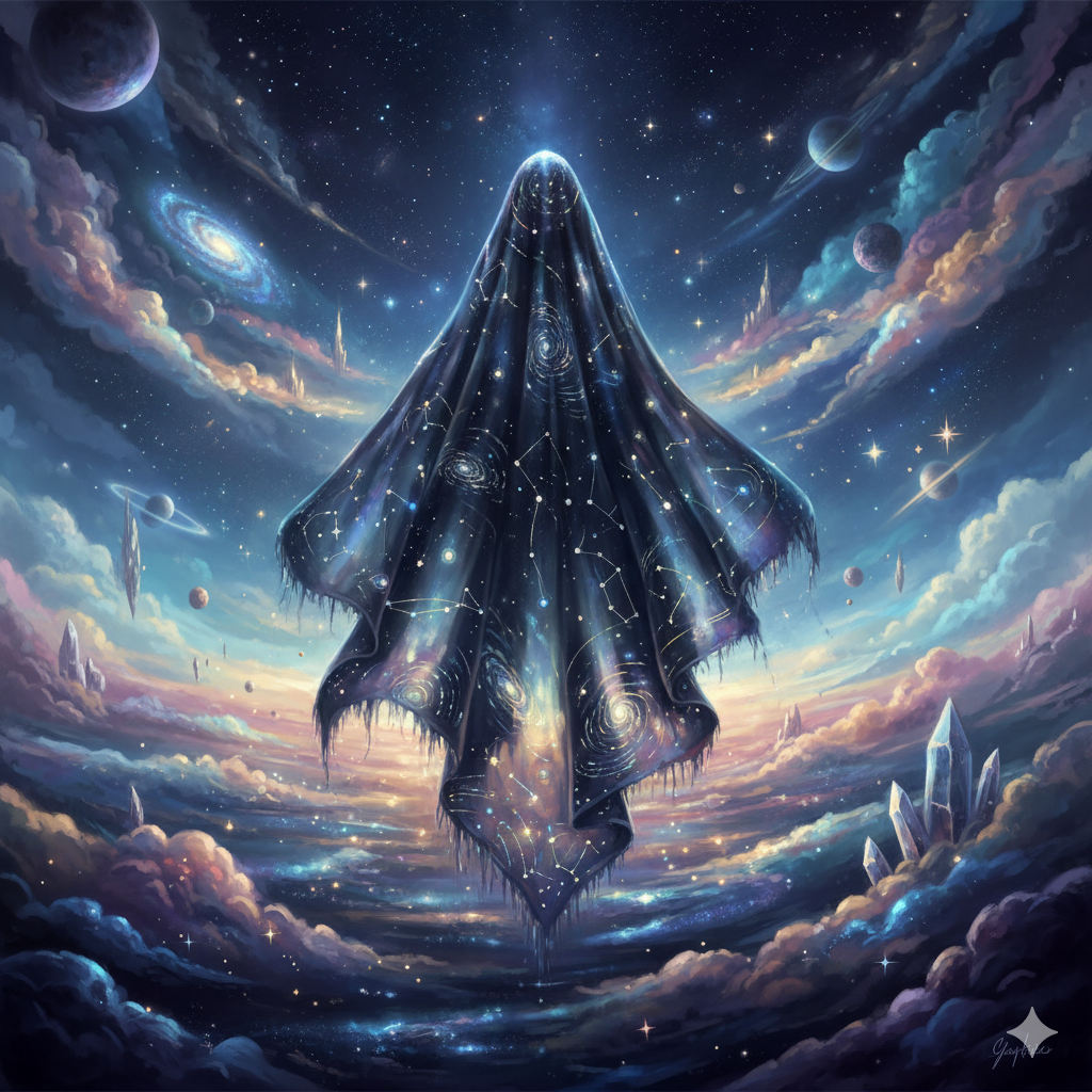 Az Éjből Szőtt Fátyol egy súlytalan, selyemhez hasonló kendő, mely lebeg a levegőben, mintha maga az éjszaka ölelné. Mélyfekete színe ezüstösen és kékesen csillog, ha fény éri — mintha a Tejút elevenedne meg rajta. A fátyol nemcsak ruhadarab, hanem kapu az álomhoz, az éjszakához, és az univerzum rejtett rétegeihez.