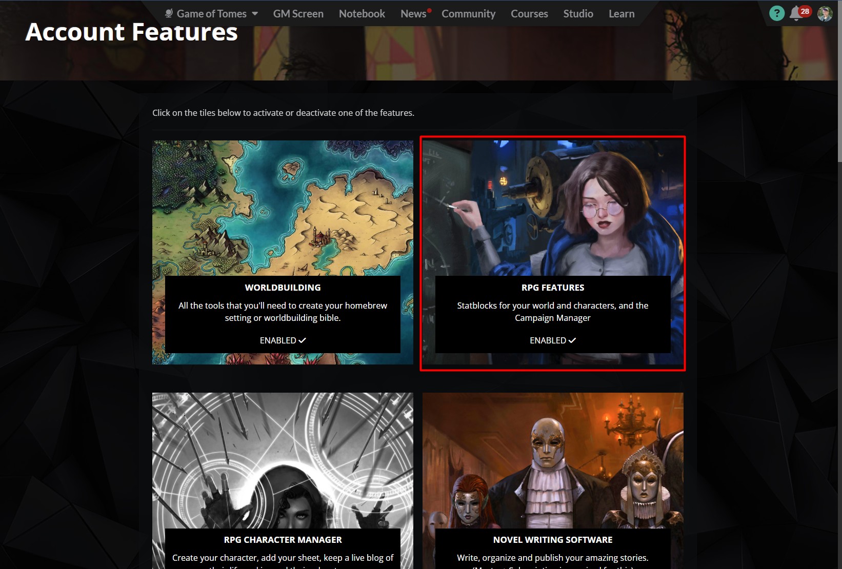 Ensure you have the RPG featues enabled. We'll be using the statblocks function of this feature.