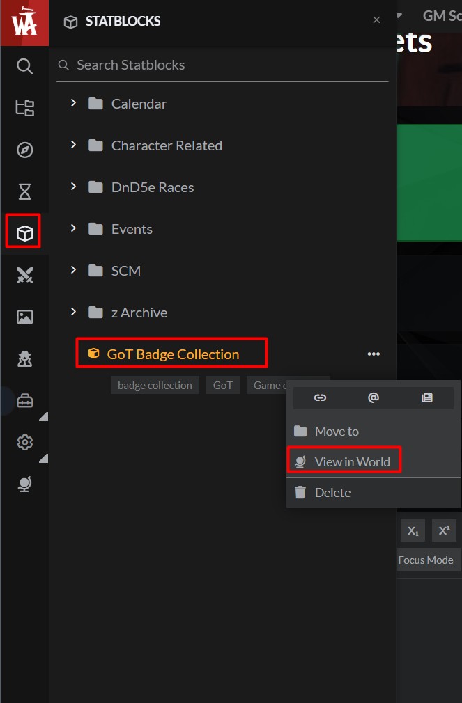 Edit it and add your badge(s) between the Col3 tags. Click "Save changes". (Statblocks don't auto save at the time of this tutorial's creation.)