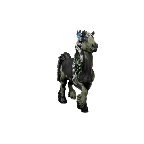 Loch has two forms he regularly shifts between.The first is a mossy green and black horse the size of a Clydesdale. His mane is well cared for and he wears feathers gifted from Olivette behind his ears. He is approximately 18 hands (72 inches/183 centimeters) tall and weighs 2,000 pounds (907 kilograms).