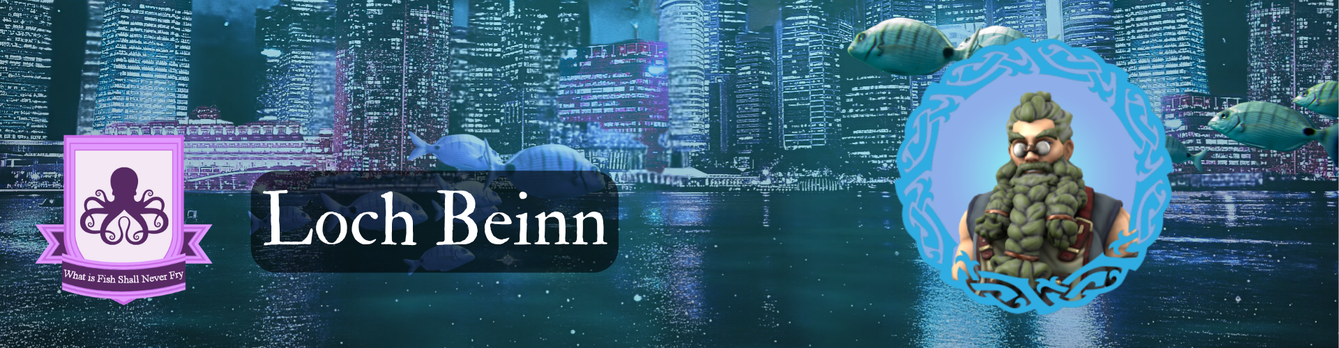 Loch Beinn is a Kelpie born in Scotland. He is the Forge Master of Mollusca, having earned the title during the sixth word war by helping arm the living. His most notable creation is Olivette Rivers (life partner) trident which they are never seen without.